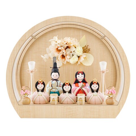 雛人形 ケース飾り コンパクト おしゃれ 今どき 雛 丸型 最新 木目込み ぷりふあ 月ノ時 Sサイズ 五人飾り 花飾り 【萌笑・あさ 花飾り付属】 ひな人形 モダン インテリア お雛様 おひなさま
