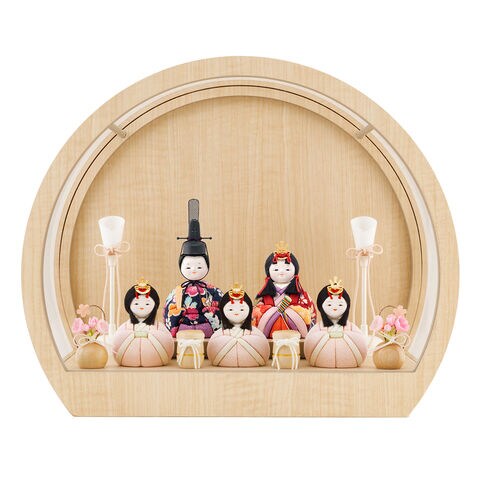 雛人形 ケース飾り コンパクト おしゃれ 今どき 雛 丸型 最新 木目込み ぷりふあ 月ノ時 Sサイズ 五人飾り 花飾り 【三葉・あさ 花飾りなし】 ひな人形 モダン インテリア お雛様 おひなさま