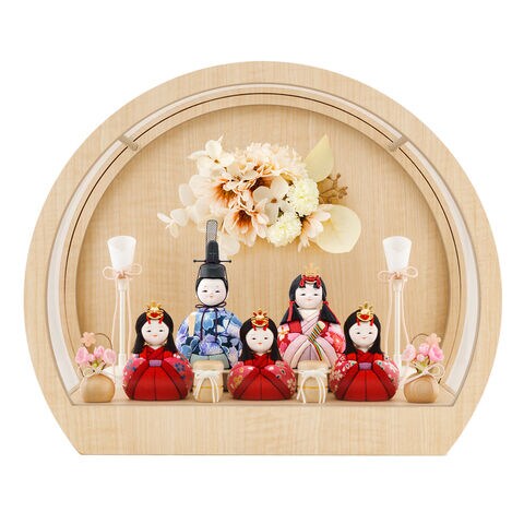 雛人形 ケース飾り コンパクト おしゃれ 今どき 雛 丸型 最新 木目込み ぷりふあ 月ノ時 Sサイズ 五人飾り 花飾り 【胡桃・べに 花飾り付属】 ひな人形 モダン インテリア お雛様 おひなさま