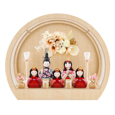 雛人形 ケース飾り コンパクト おしゃれ 今どき 雛 丸型 最新 木目込み ぷりふあ 月ノ時 Sサイズ 五人飾り 花飾り 【咲歩・べに 花飾り付属】 ひな人形 モダン インテリア お雛様 おひなさま