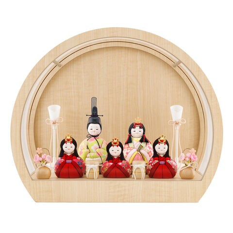 雛人形 ケース飾り コンパクト おしゃれ 今どき 雛 丸型 最新 木目込み ぷりふあ 月ノ時 Sサイズ 五人飾り 花飾り 【乃々・べに 花飾りなし】 ひな人形 モダン インテリア お雛様 おひなさま