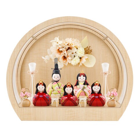 雛人形 ケース飾り コンパクト おしゃれ 今どき 雛 丸型 最新 木目込み ぷりふあ 月ノ時 Sサイズ 五人飾り 花飾り 【乃々・べに 花飾り付属】 ひな人形 モダン インテリア お雛様 おひなさま