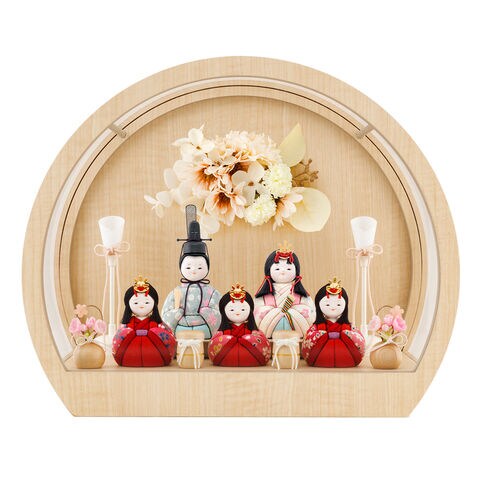雛人形 ケース飾り コンパクト おしゃれ 今どき 雛 丸型 最新 木目込み ぷりふあ 月ノ時 Sサイズ 五人飾り 花飾り 【瑠莉・べに 花飾り付属】 ひな人形 モダン インテリア お雛様 おひなさま