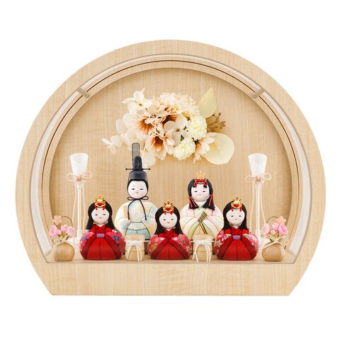 雛人形 ケース飾り コンパクト おしゃれ 今どき 雛 丸型 最新 木目込み ぷりふあ 月ノ時 Sサイズ 五人飾り 花飾り 【風羽・べに 花飾り付属】 ひな人形 モダン インテリア お雛様 おひなさま
