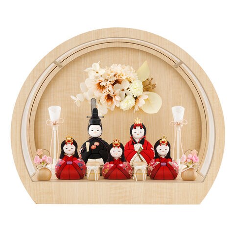 雛人形 ケース飾り コンパクト おしゃれ 今どき 雛 丸型 最新 木目込み ぷりふあ 月ノ時 Sサイズ 五人飾り 花飾り 【由梅・べに 花飾り付属】 ひな人形 モダン インテリア お雛様 おひなさま