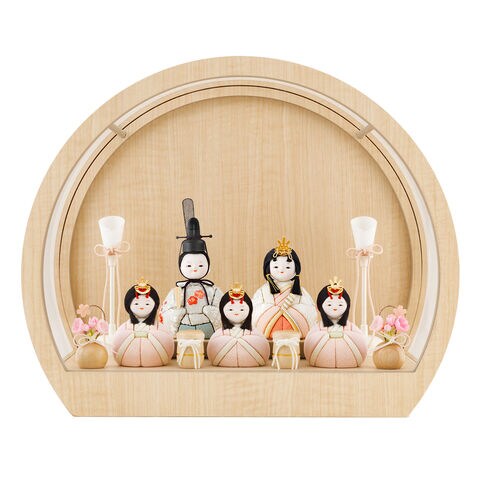 雛人形 ケース飾り コンパクト おしゃれ 今どき 雛 丸型 最新 木目込み ぷりふあ 月ノ時 Sサイズ 五人飾り 花飾り 【志乃・あさ 花飾りなし】 ひな人形 モダン インテリア お雛様 おひなさま
