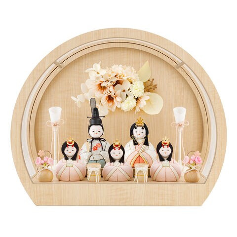 雛人形 ケース飾り コンパクト おしゃれ 今どき 雛 丸型 最新 木目込み ぷりふあ 月ノ時 Sサイズ 五人飾り 花飾り 【志乃・あさ 花飾り付属】 ひな人形 モダン インテリア お雛様 おひなさま