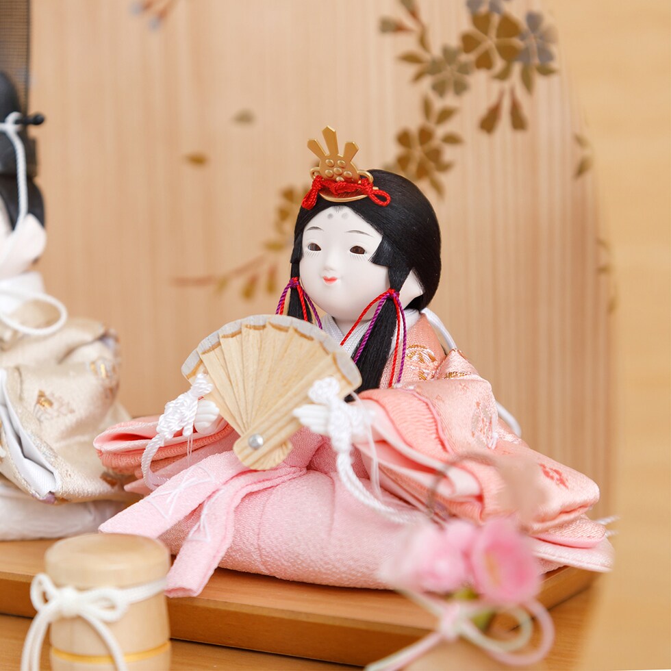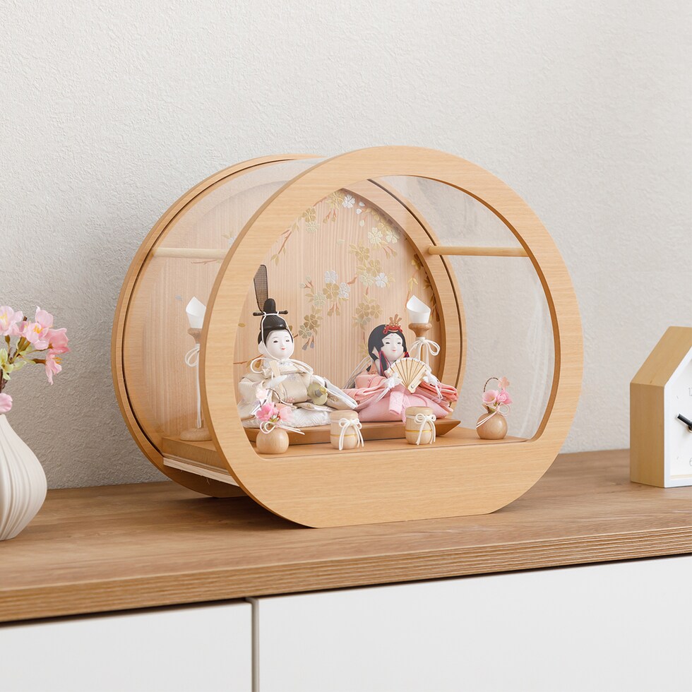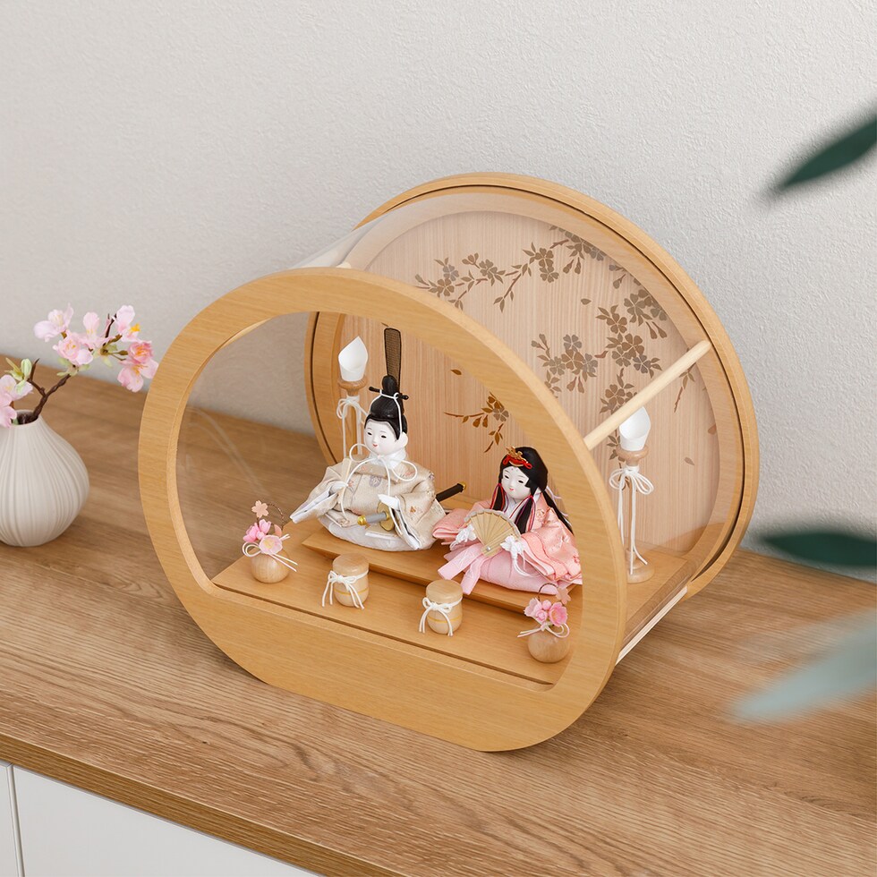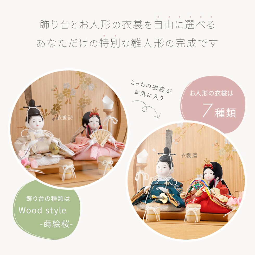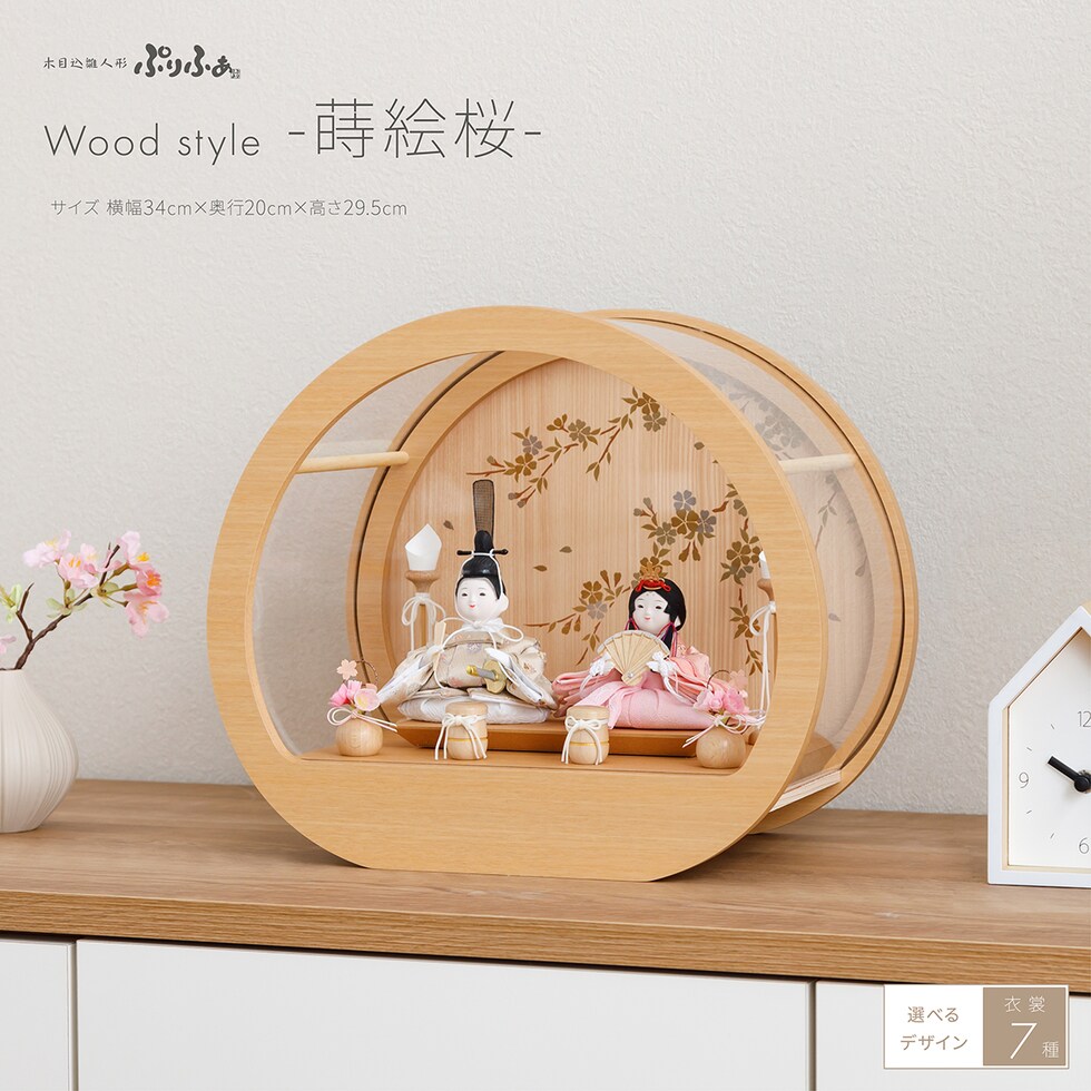 雛人形 おひなさま コンパクト モダン おしゃれ ぷりふあ 衣(ころも) Wood style -蒔絵桜- 親王飾り ケース飾り 【星】 お雛様 ひなまつり 最新 今どき かわいい インテリア 雛