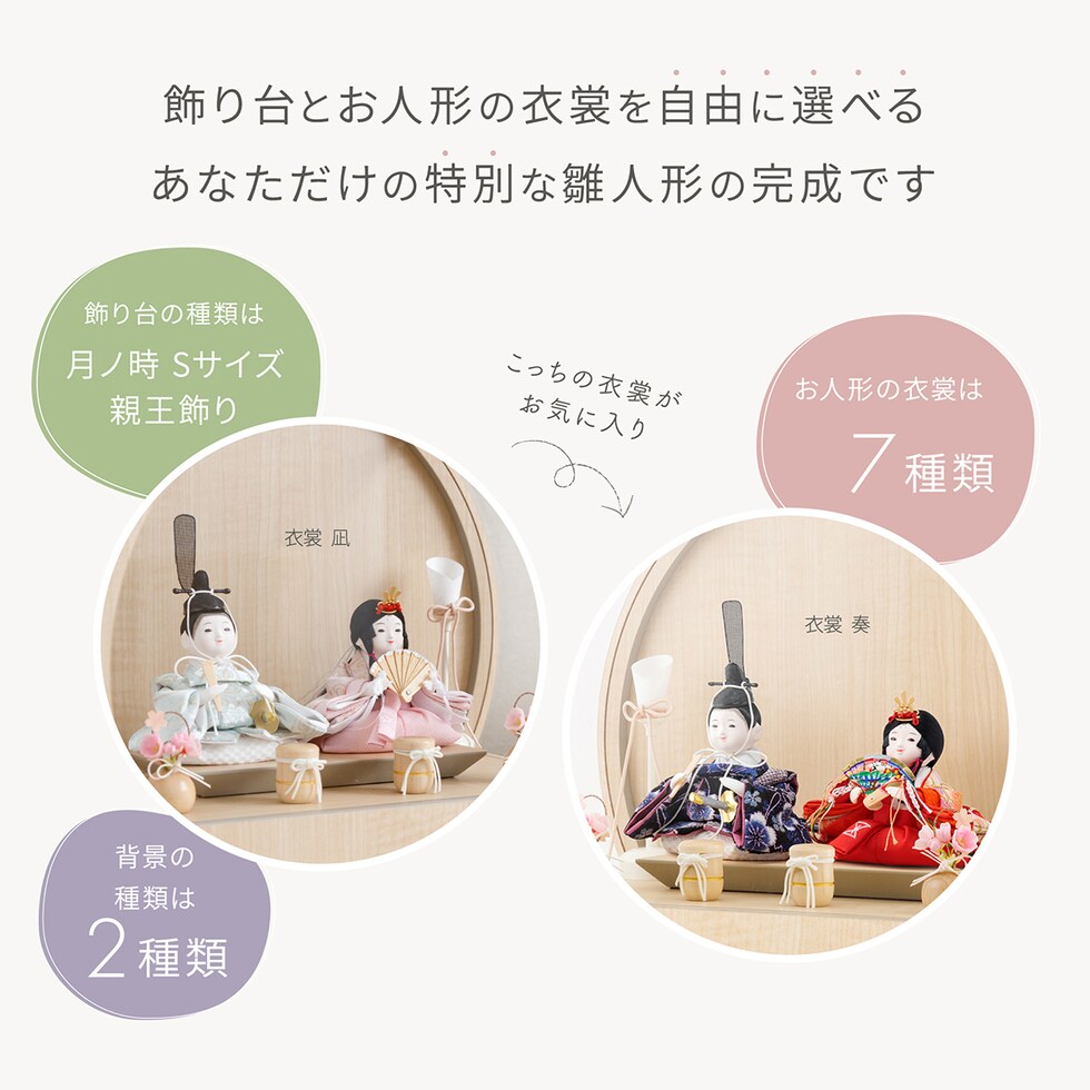 雛人形 ケース飾り コンパクト 今どき 雛 丸型 ひな人形 ぷりふあ 衣(ころも) 月ノ時 Sサイズ 親王飾り 花飾り 【星 花飾りなし】 インテリア お雛様 おひなさま 最新 モダン おしゃれ かわいい 雛