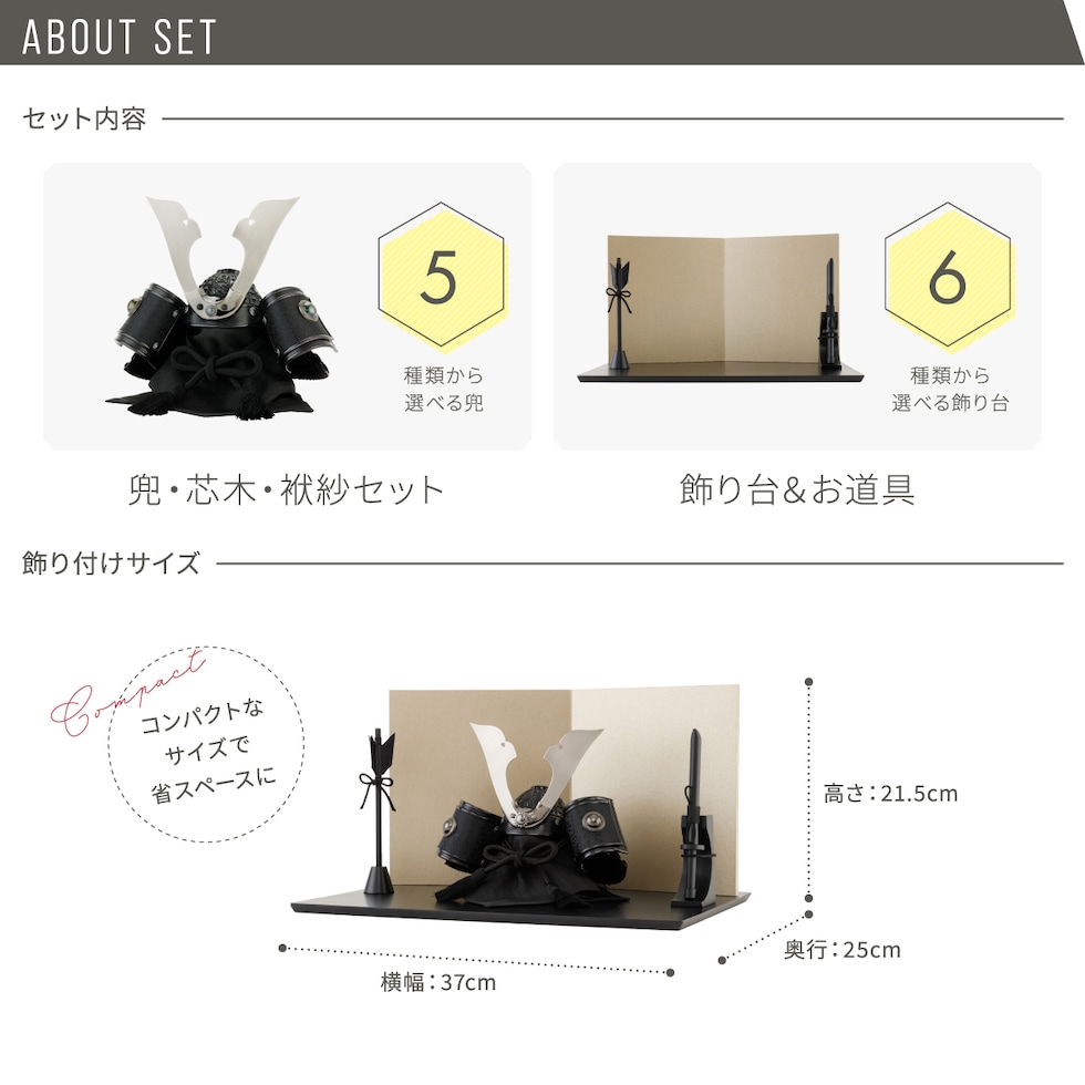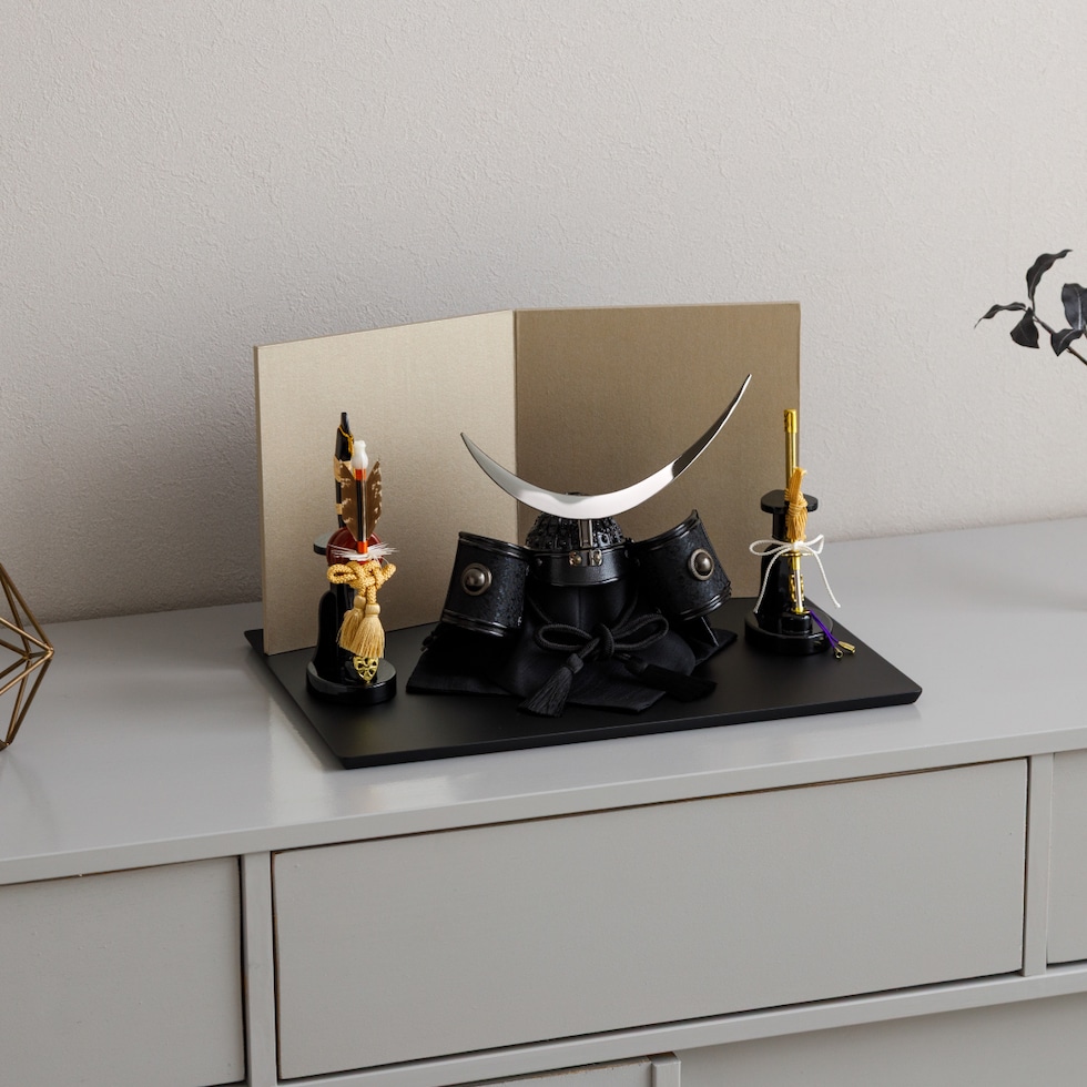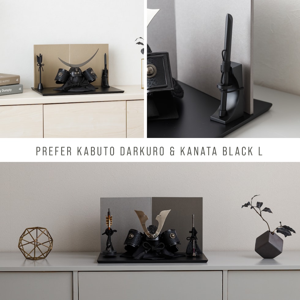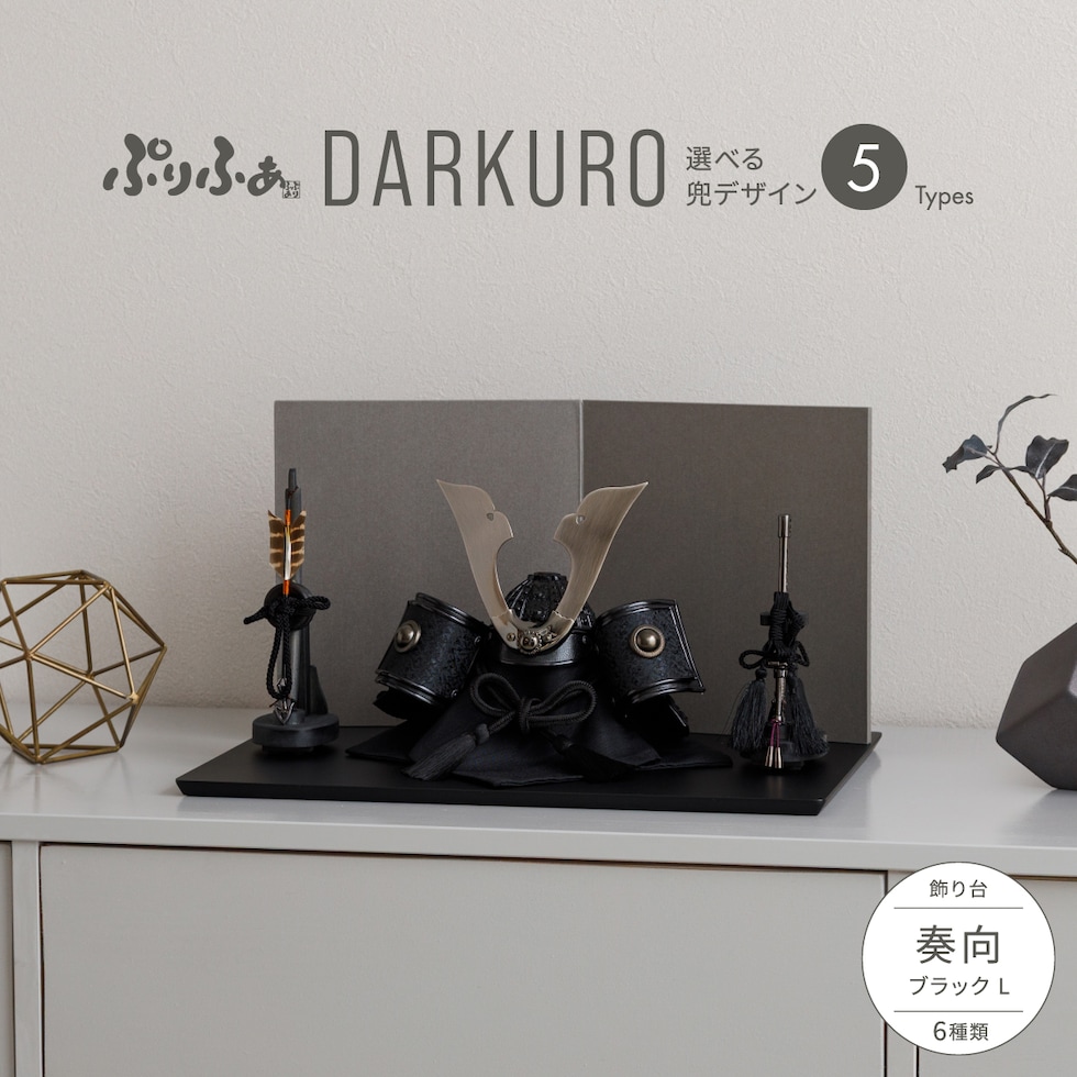 五月人形 コンパクト おしゃれ 兜飾り 兜 モダン インテリア 5月人形 ぷりふあ 五月人形 DARKURO 奏向-kanata-ブラックL 兜5種類 屏風2種類 脇飾り3種類 平飾り オプション ケース 【冥・グレー 弓太刀ORI・ケースなし】 節句 男の子 こどもの日 端午の節句