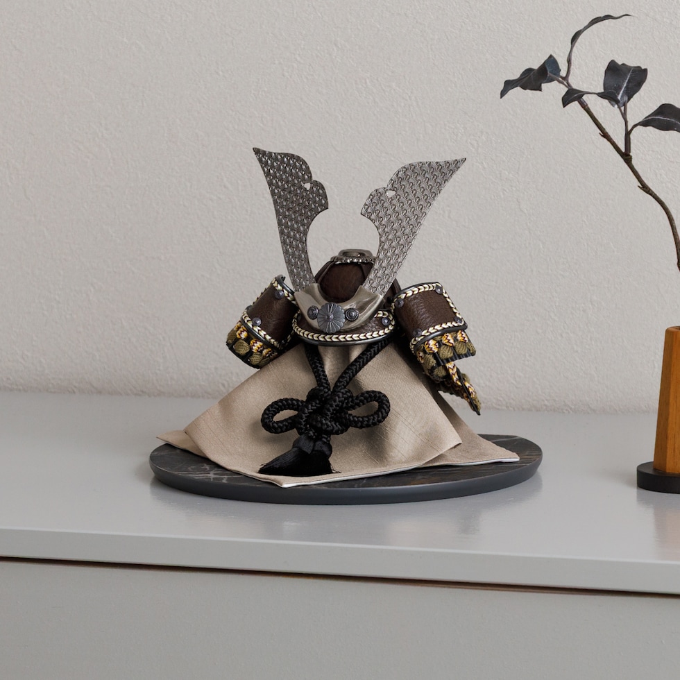 五月人形 コンパクト おしゃれ 兜飾り 兜 モダン インテリア 5月人形 ぷりふあ 五月人形 EIMEI 半月 兜2種類 飾り台5種類 平飾り オプション ケース 【縁黒・ナチュラル W26ナチュラルケース】 初節句 男の子 こどもの日 端午の節句 最新 人気