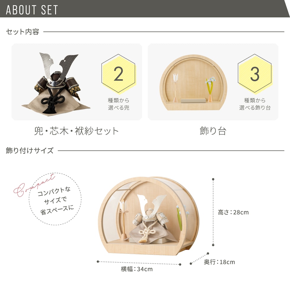 五月人形 ケース飾り コンパクト おしゃれ 兜飾り 兜 モダン インテリア 5月人形 ぷりふあ 五月人形 EIMEI 月ノ時-tsuki no toki- ナチュラル S 兜2種類 脇飾り3種類 【色嘉 矢・太刀】 初節句 男の子 こどもの日 端午の節句 最新 人気