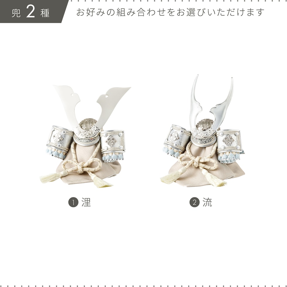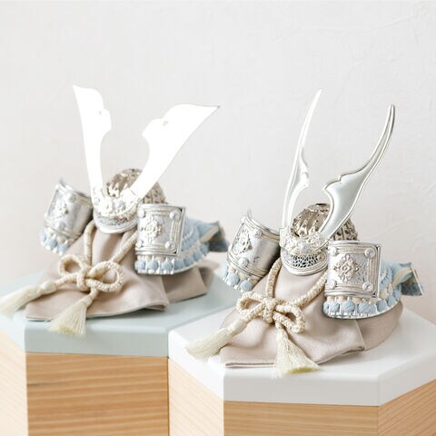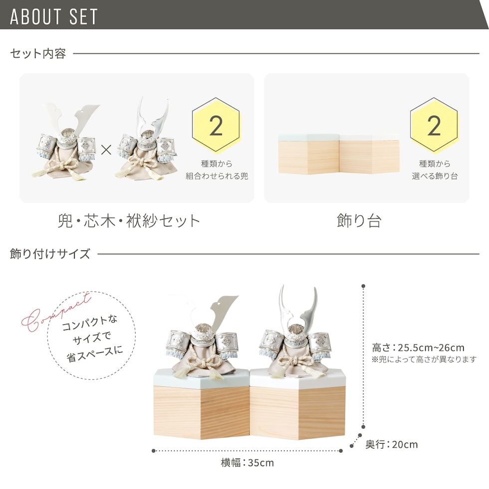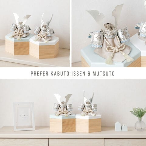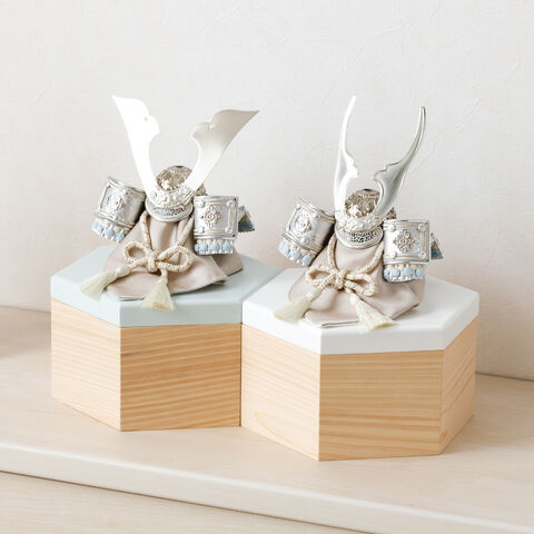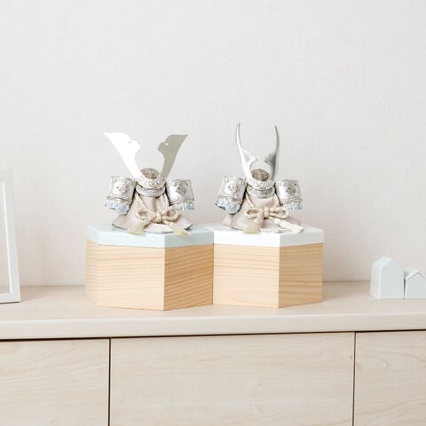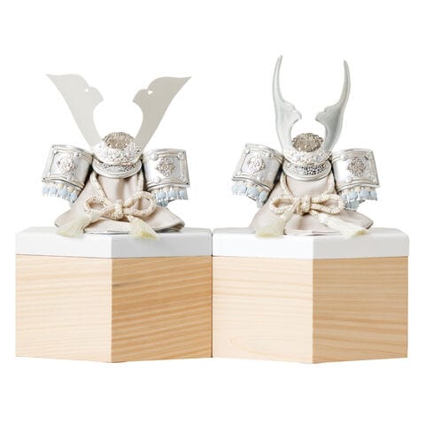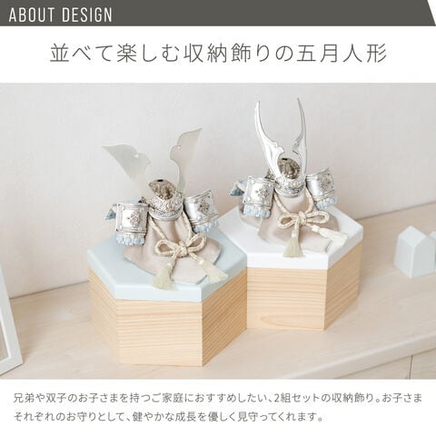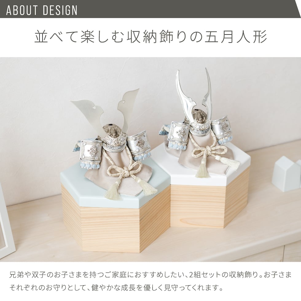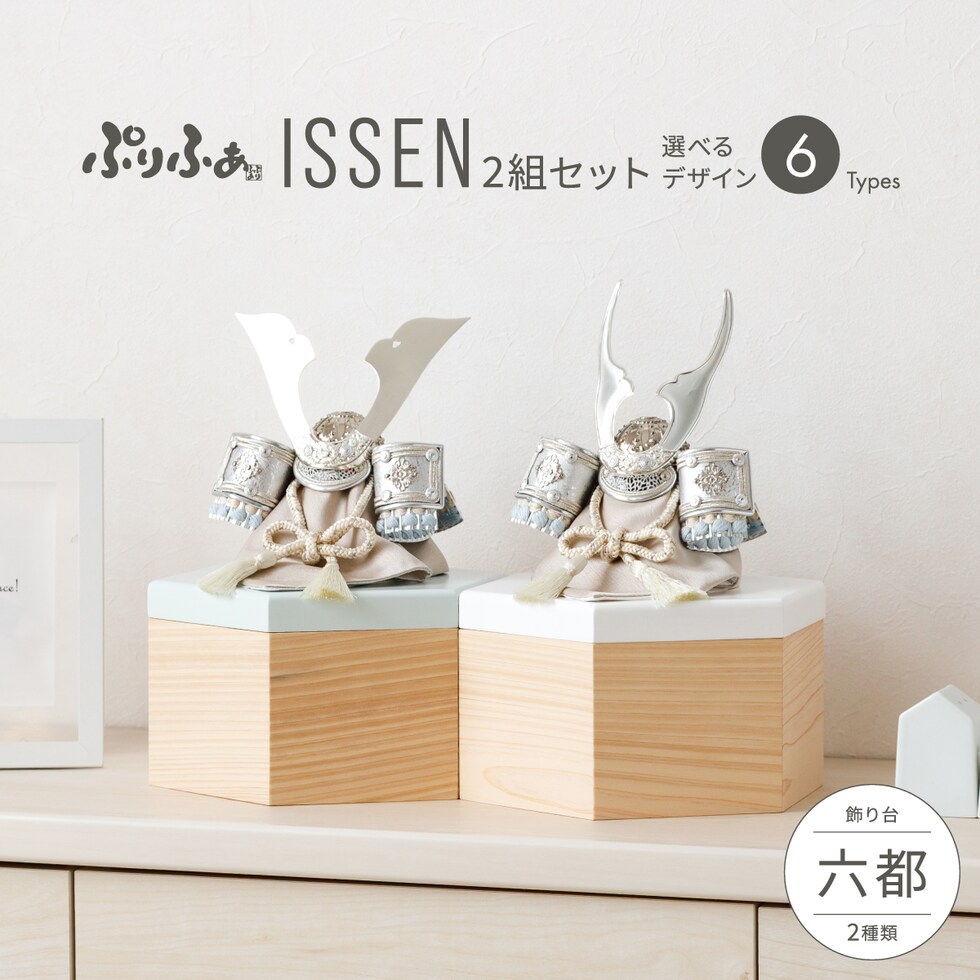 五月人形 双子 兄弟 コンパクト おしゃれ 兜飾り モダン インテリア 5月人形 ぷりふあ 五月人形 ISSEN 2組セット 収納飾り 六都 兜2種類 飾り台2種類 【浬&流 スノーホワイト・スノーホワイト】 初節句 男の子 兜 子供の日 最新 人気