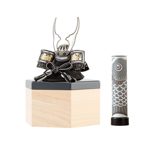 五月人形 コンパクト おしゃれ 収納飾り 兜飾り 兜 モダン インテリア 5月人形 ぷりふあ 五月人形 ISSEN 六都-mutsuto- 兜6種類 飾り台3種類 脇飾り2種類 【駿・マットブラック 行灯鯉のぼり】 初節句 男の子 こどもの日 端午の節句 最新 人気