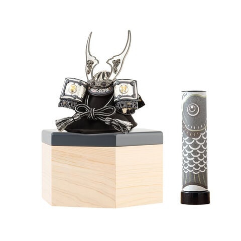 五月人形 コンパクト おしゃれ 収納飾り 兜飾り 兜 モダン インテリア 5月人形 ぷりふあ 五月人形 ISSEN 六都-mutsuto- 兜6種類 飾り台3種類 脇飾り2種類 【魁・マットブラック 行灯鯉のぼり】 初節句 男の子 こどもの日 端午の節句 最新 人気