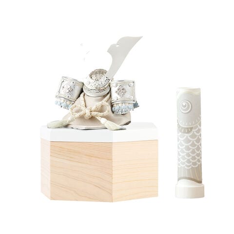 五月人形 コンパクト おしゃれ 収納飾り 兜飾り 兜 モダン インテリア 5月人形 ぷりふあ 五月人形 ISSEN 六都-mutsuto- 兜6種類 飾り台3種類 脇飾り2種類 【浬・スノーホワイト 行灯鯉のぼり】 初節句 男の子 こどもの日 端午の節句 最新 人気