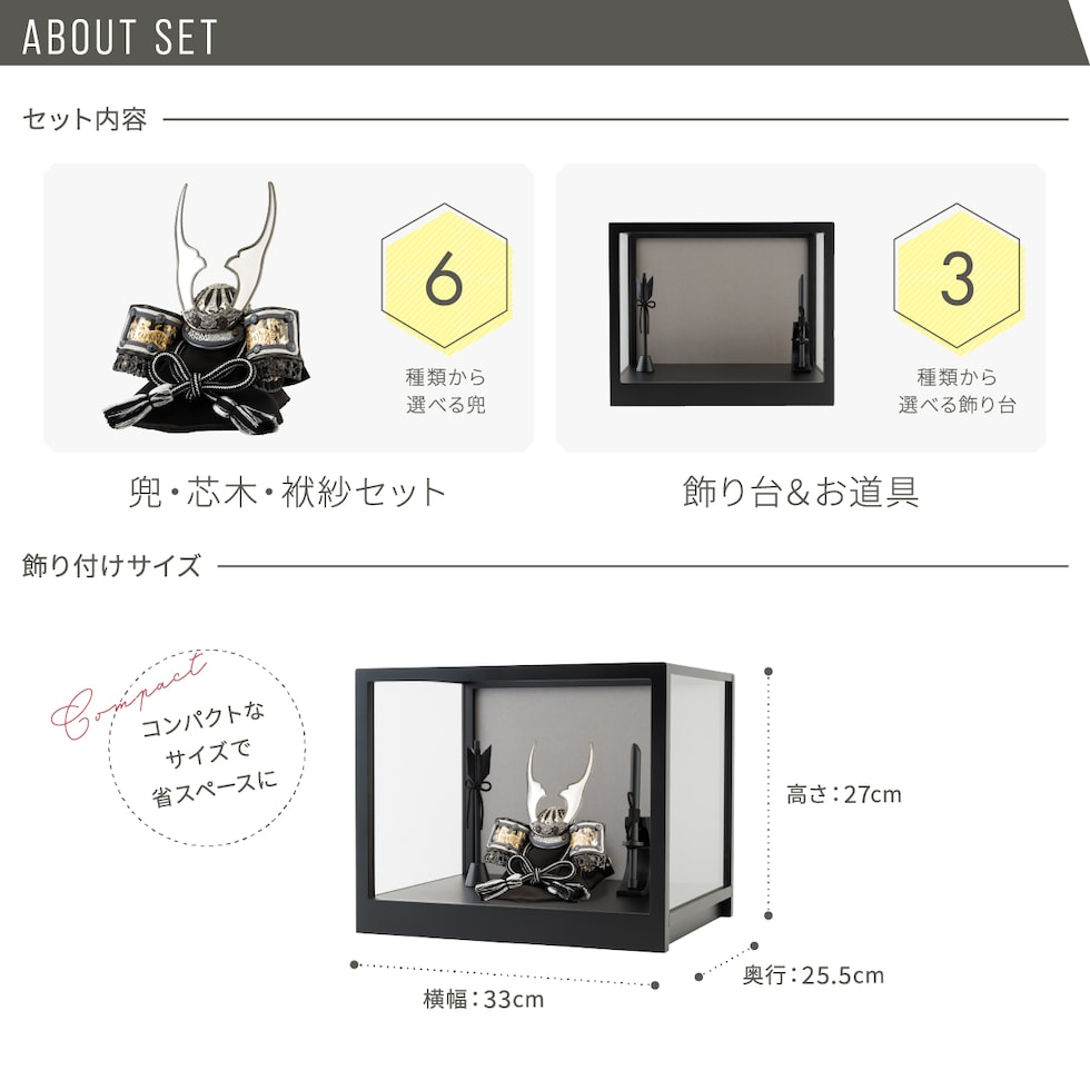 五月人形 ケース飾り コンパクト おしゃれ 兜飾り 兜 モダン インテリア 5月人形 ぷりふあ 五月人形 ISSEN 四緑ノ時-shiroku no toki- ブラック 兜6種類 脇飾り3種類 【駿 矢・太刀】 初節句 男の子 こどもの日 端午の節句 最新 人気