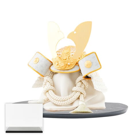 五月人形 コンパクト おしゃれ 兜飾り 兜 モダン インテリア 5月人形 ぷりふあ 五月人形 RIRAI 半月 兜3種類 飾り台5種類 平飾り オプション ケース 【才知・大理石調グレー W34ブラックケース】 初節句 男の子 こどもの日 端午の節句 最新 人気