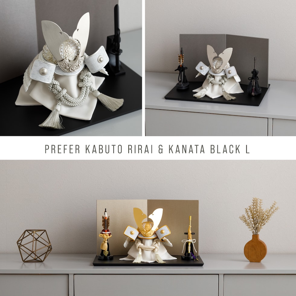 五月人形 コンパクト おしゃれ 兜飾り 兜 モダン インテリア 5月人形 ぷりふあ 五月人形 RIRAI 奏向-kanata-ブラックL 兜3種類 屏風2種類 脇飾り3種類 平飾り オプション ケース 【素尚・グレー 弓太刀ORI・ケース付属】 初節句 男の子 こどもの日 端午の節句