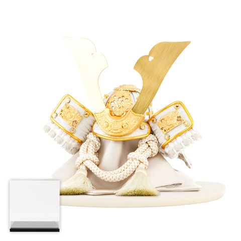 五月人形 コンパクト おしゃれ 兜飾り 兜 モダン インテリア 5月人形 ぷりふあ 五月人形 SHINMEI 半月 兜3種類 飾り台5種類 平飾り オプション ケース 【廉・木目調ホワイト W24ブラックケース】 初節句 男の子 こどもの日 端午の節句 最新 人気