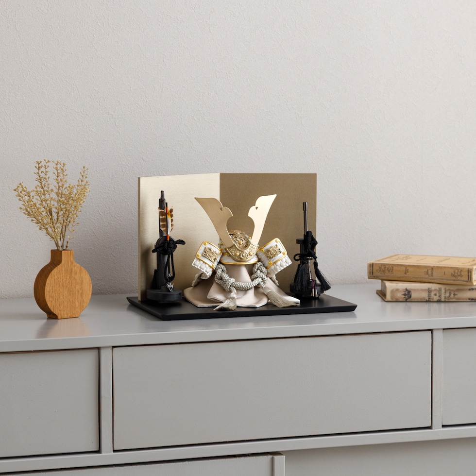 五月人形 コンパクト おしゃれ 兜飾り 兜 モダン インテリア 5月人形 ぷりふあ 五月人形 SHINMEI 奏向-kanata-ブラックM 兜3種類 屏風2種類 脇飾り3種類 平飾り オプション ケース 【燦・ゴールド 矢-太刀・ケースなし】 初節句 男の子 こどもの日 端午の節句