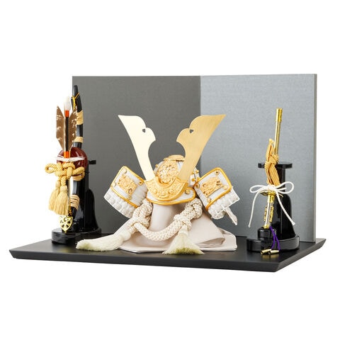 五月人形 コンパクト おしゃれ 兜飾り 兜 モダン インテリア 5月人形 ぷりふあ 五月人形 SHINMEI 奏向-kanata-ブラックM 兜3種類 屏風2種類 脇飾り3種類 平飾り オプション ケース 【廉・グレー 弓太刀ORI・ケースなし】 初節句 男の子 こどもの日 端午の節句