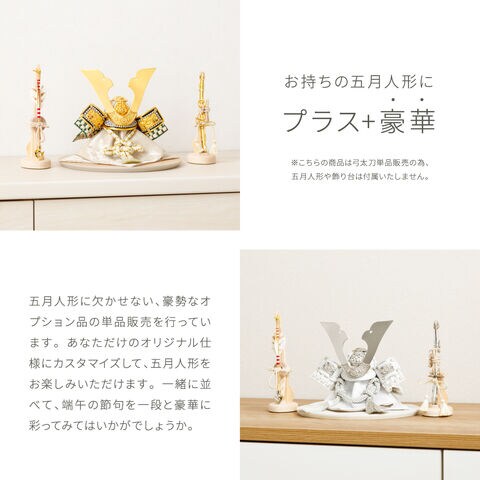 五月人形 コンパクト おしゃれ 5月人形 ぷりふあ 単品 販売 単品 弓太刀白珠-HAKUJU- 5号 【金】 初節句 男の子 兜 子供の日