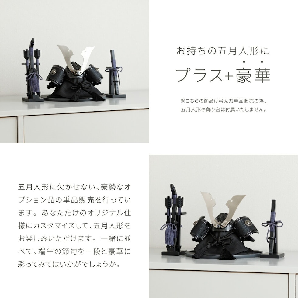 五月人形 コンパクト おしゃれ 5月人形 ぷりふあ 単品 販売 単品 弓太刀-MOKU-ブラック- 初節句 男の子 兜 子供の日