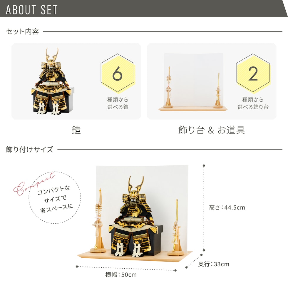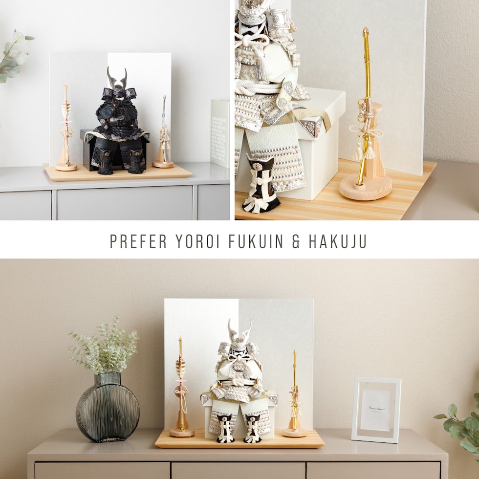 五月人形 コンパクト おしゃれ 鎧飾り モダン インテリア 5月人形 ぷりふあ 五月人形 FUKUIN弓太刀HAKUJUセット 鎧6種類 お道具2種類 【響 金】 初節句 男の子 子供の日 最新 人気