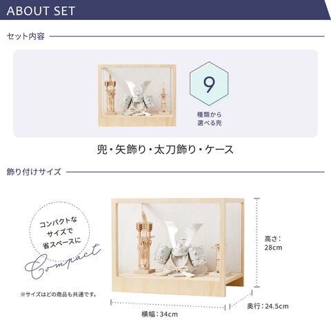※兜や弓太刀は、ケースへ固定しておりません。お客様でお飾りいただく仕様となります。