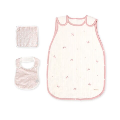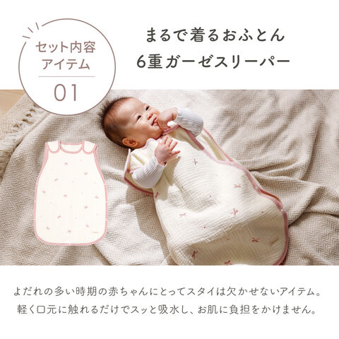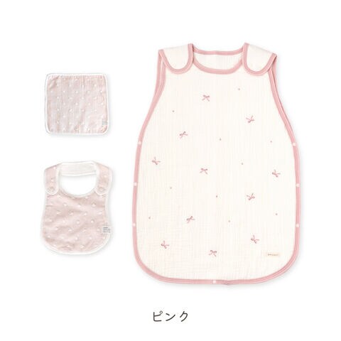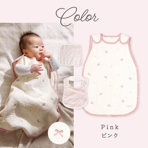 スリーパー ガーゼ 6重 出産祝い ギフトセット スタイ ハンカチ コンテックス 赤ちゃん 通年 オールシーズン かわいい ベビー 綿100% 選べるデザイン コットン プレゼント ギフト 春 夏 秋 冬 0歳 1歳 2歳 3歳 女の子 男の子【ピンク】 リボン付きBOX