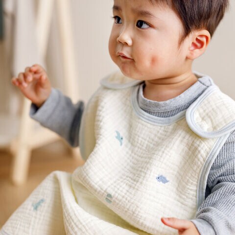 ・足が隠れていても着用できますが、転倒の恐れがあるため、つかまり立ちをするお子様には就寝時のみの使用をおすすめします。