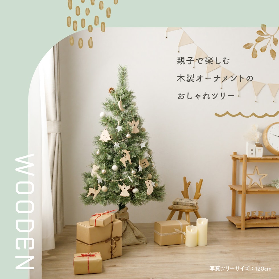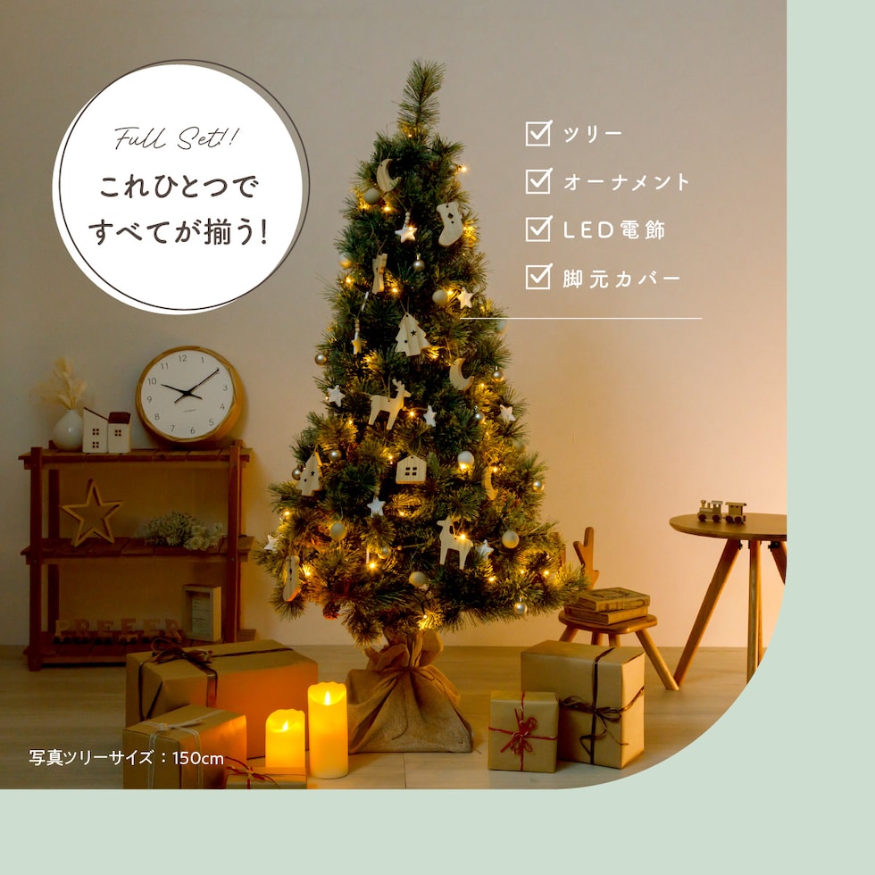 クリスマスツリー 木製 オーナメント付き 120cm 150cm 天然木 ナチュラル 飾り おしゃれ かわいい クリスマスオーナメントセット 【120cm】 クリスマスツリーセット LEDライト LEDイルミネーションライト 足元スカート ツリースカート 足隠し