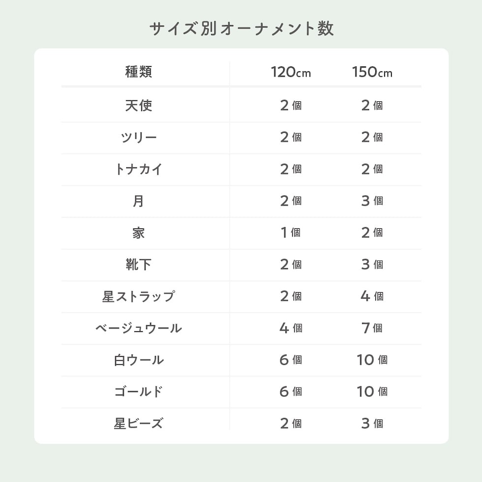 ※サイズはおおよその目安になります。枝葉の広げ方や飾り付けによって異なります