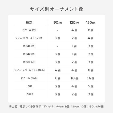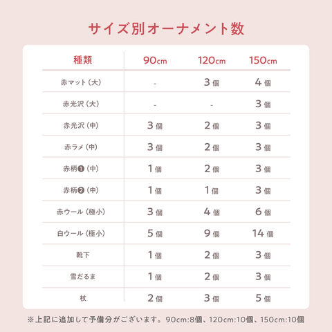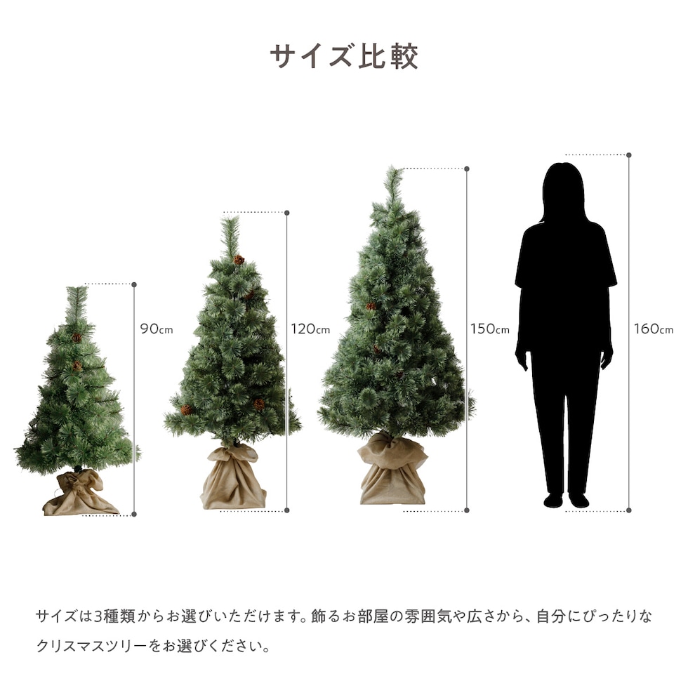 ※サイズはおおよその目安になります。枝葉の広げ方や飾り付けによって異なります