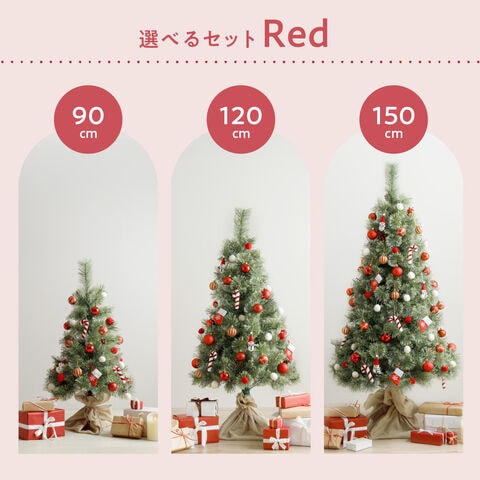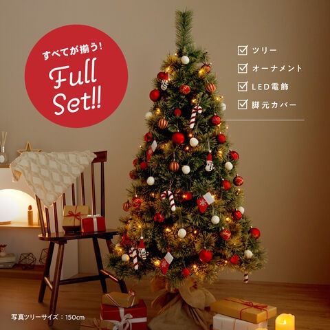 【選べる3サイズ&カラー】クリスマスツリー オーナメント付き 90cm 120cm 150cm 選べる 飾り 赤 白 飾り付き かわいい クリスマスオーナメントセット 【150cm レッド】 クリスマスツリーセット LEDライト LEDイルミネーションライト 足元スカート ツリースカート 足隠し
