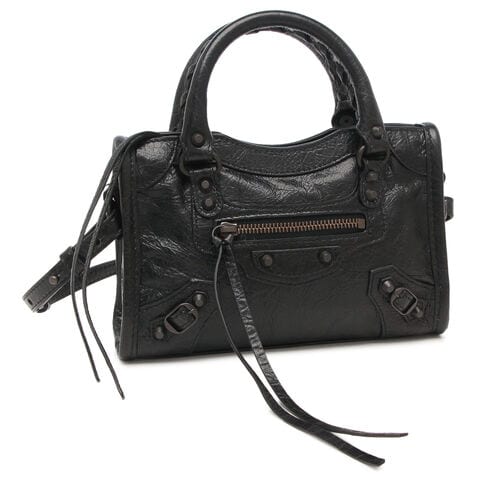 バレンシアガ ハンドバッグ ショルダーバッグ ル シティ ミニバッグ ブラック レディース BALENCIAGA 8196712 ABEK 1000 LE CITY NANO BLACK 手編み ダブルハンドル