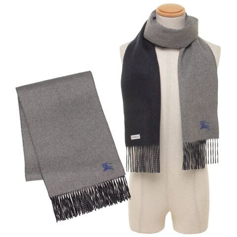 バーバリー マフラー フリンジ リバーシブル グレー ネイビー メンズ レディース ユニセックス BURBERRY 8077824 A1345 GRAY NAVY カシミア