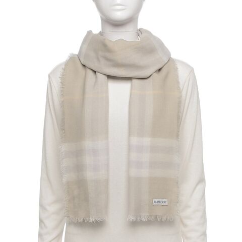 BURBERRY(バーバリー)のスカーフが入荷しました☆柔らかな色彩でチェック柄を描いた優し気な表情が特徴です。端には細かくフリンジが施されており、デザインに動きをプラス。大きめのサイズ感でしっかりとボリュームを演出し、首元をあたためるのはもちろん、ちょっとしたブランケット代わりとしても重宝します。