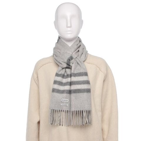BURBERRY(バーバリー)のマフラーが入荷しました☆クラシカル感が漂うチェック柄で、スタイリングにアクセントを添えます。動くたびに揺れる両端のフリンジも魅力的なポイント。肌触りの良いカシミヤ素材を使用しており、軽やかなつけ心地です。ユニセックスで着用できるため、ギフトとしても喜ばれます。