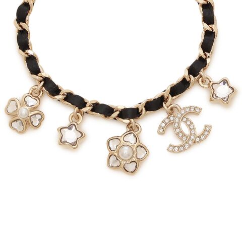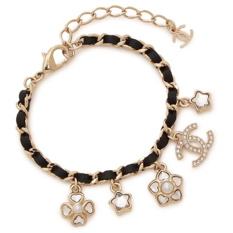 CHANEL(シャネル)のブレスレットが入荷しました☆クローバーやフラワー、スター等、遊び心のあるモチーフとラグジュアリーなココマークを連ねた華やぎのあるデザインです。華奢なリボンとメタルパーツを絡ませた、編み上げ風のディテールにもご注目。アジャスター付きでサイズの調節もできるため、ほど良いフィット感でご着用いただけます。