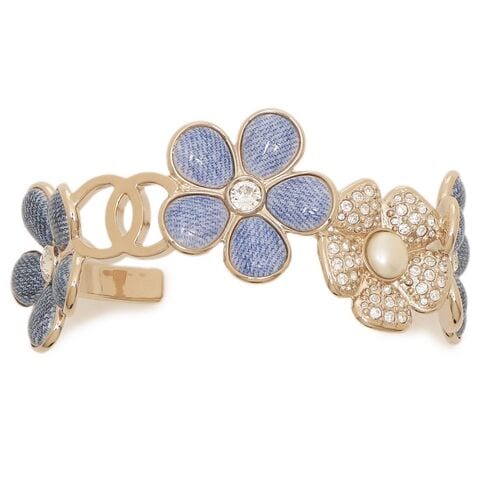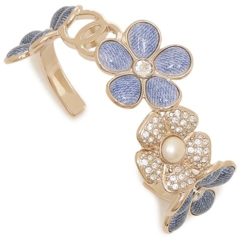 シャネル バングル ブレスレット デニム フラワーモチーフ 花 CCマーク ココマーク ゴールド ブルー レディース CHANEL ABG832 B22935 U5844 シャンパンゴールド デニムネイビー