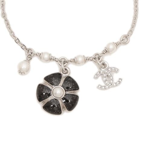 シャネル ブレスレット フラワーモチーフ 花 CCマーク ココマーク シルバー ブラック レディース CHANEL ABG891 B22986 U6097 ブラック シルバー