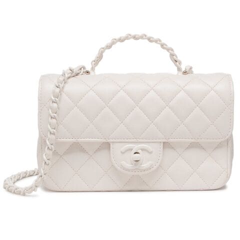 シャネル ハンドバッグ ショルダーバッグ マトラッセ CCマーク ココマーク ミニバッグ ホワイト レディース CHANEL AS5243 B18687 10601 MATELASSE トップハンドルミニ フラップバッグ ホワイト ホワイト金具