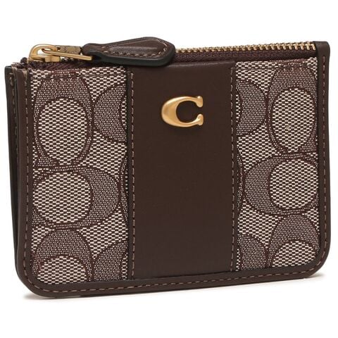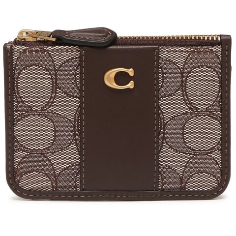 コーチ カードケース エッセンシャル ミニ ID カードケース ブラウン レディース COACH CCD13 B4OAK SIGNATURE JACQUARD ESSENTIAL MINI ID CARD CASE B4 OAK
