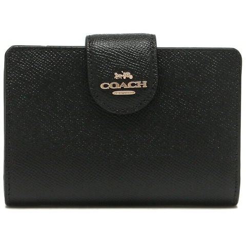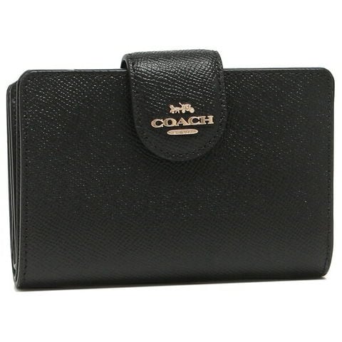 コーチ アウトレット 二つ折り財布 ブラック レディース COACH 6390 IMBLK MEDIUM CORNER ZIP WALLET ブラック 無地