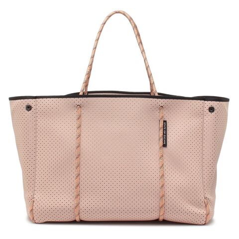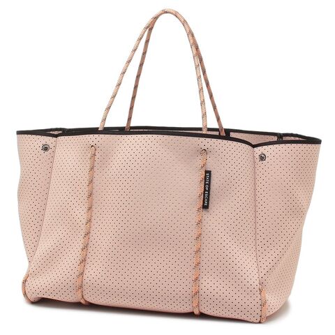 STATE OF ESCAPE(ステートオブエスケープ)のトートバッグが入荷しました☆流行りに左右されない、ブランド定番モデルのトートバッグ。パンチングされたネオプレン生地とロープを使用しており、シンプルながらもディティールにこだわったアイテムです。サイドのスナップボタンを留めることで、コンパクトなスタイルにも対応します。