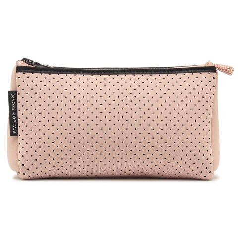 STATE OF ESCAPE(ステートオブエスケープ)のショルダーバッグが入荷しました☆パンチングされたネオプレン生地を使用し、洗練された見た目に仕上げた一品。フロントにはブランドロゴをあしらい、控えめなアクセントを効かせました。中身の整理整頓に役立つポーチがセットになっており、単品使いも可能です。ショルダーストラップは斜め掛けができ、気分に合わせて持ち方のスタイルをお選びいただけます。