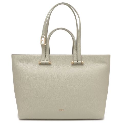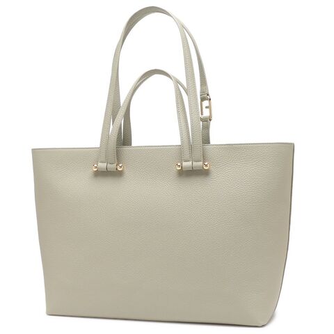 FURLA(フルラ)のトートバッグが入荷しました☆コーディネートに優しい印象を与える、落ち着いたカラーリングです。煌めくメタリックのロゴや金具が上品なアクセント。長さの異なる持ち手が付いており、その日の装いや場面に合わせて使い分けできます。マチを備えた大きめサイズで、荷物が多いシーンでも活躍する一品です。