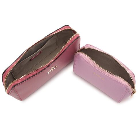 FURLA(フルラ)のポーチが入荷しました☆明るくフェミニンなカラーリングを採用し、愛らしいデザインになりました。フロントにはメタルカラーでブランドロゴをあしらい、さりげなく高級感が漂うアクセントをプラス。ラウンドファスナー仕様で間口も大きく開き、使い心地も良好です。